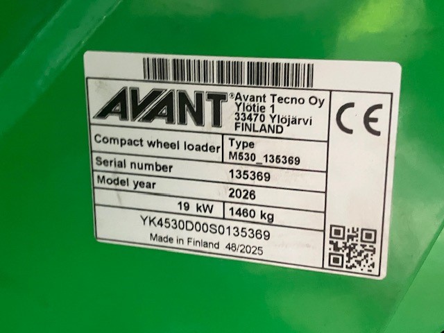 Nieuwe AVANT 530 TDL+ kniklader met gewicht van 1540 kgs