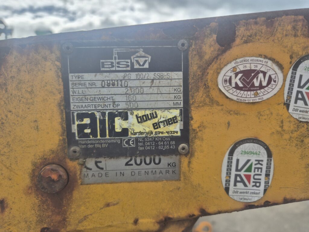Home » Landbouwmechanisatie » BSV P100/2 SSB-S pallethaak 2 ton