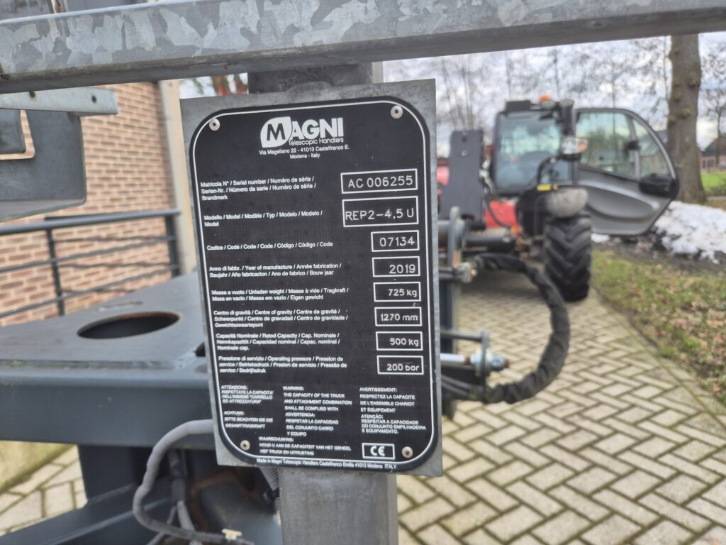 Gebruike MAGNI werkbak 500 kgs, model REP 2-4.5 U, breedte 2 m, passend aan Magni “U”, gewicht 725 kgs, in z.g.st.